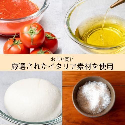 厳選されたイタリア産素材(トマト、塩、オリーブオイル、モッツアレラチーズ)の具材は余計な調味料を加えず、短時間の高温調理により素材そのものの旨みを引き出します。焼き上がりを瞬間冷凍させることで焼き立ての味を一気に封じ込めます。